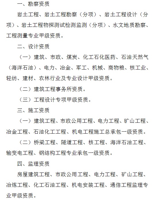 試點下放審批權限的資質(zhì)類別如下