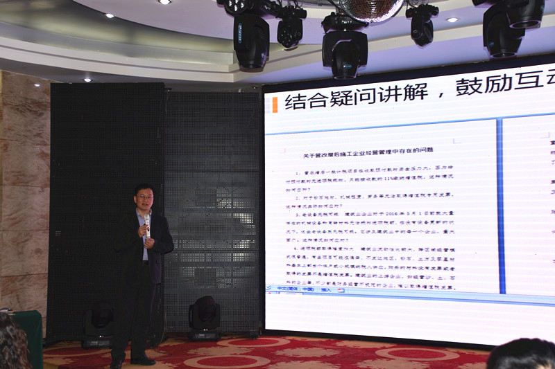 國(guó)家“營(yíng)改增”專(zhuān)家徐關(guān)潮老師為大家講解“營(yíng)改增”對(duì)建筑企業(yè)產(chǎn)生的風(fēng)險(xiǎn)及應(yīng)對(duì)方法