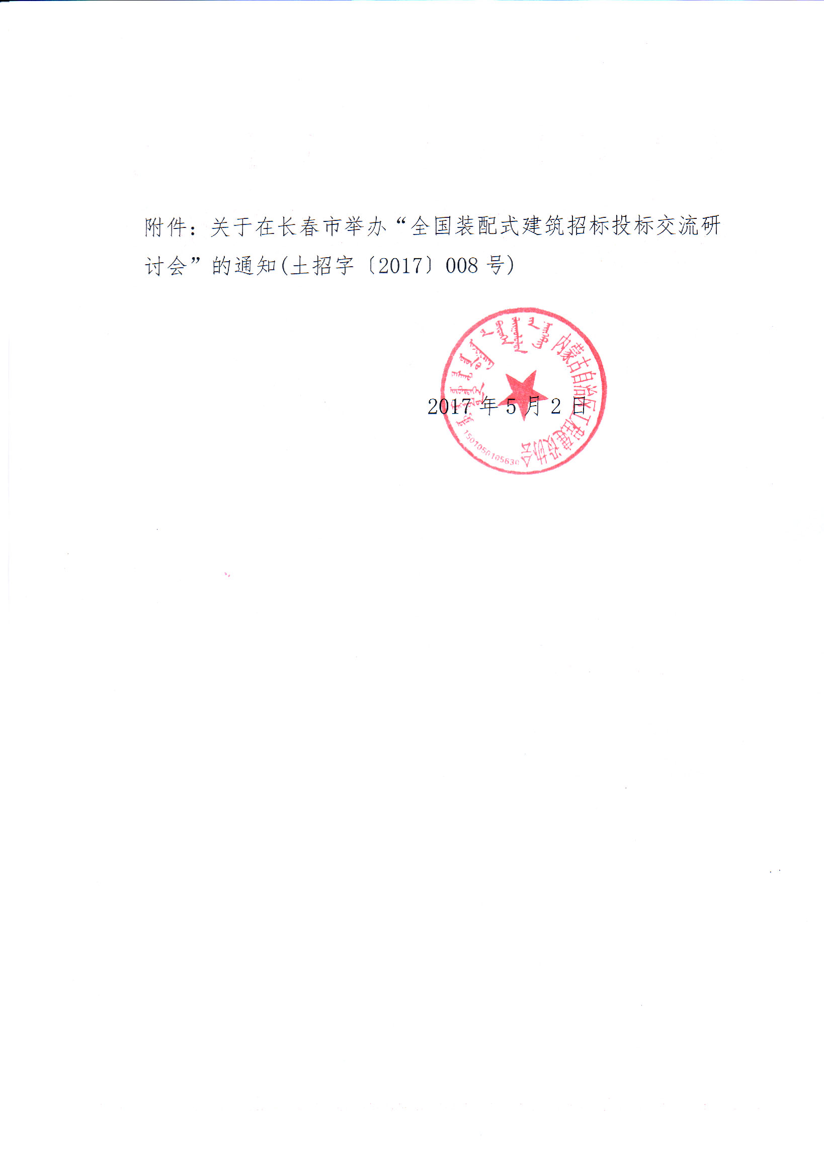 附件:關(guān)于在長(zhǎng)春市舉辦“全國(guó)裝配式建筑招標(biāo)投標(biāo)交流研討會(huì)”的通知(土招字{2017}008號(hào)).docx